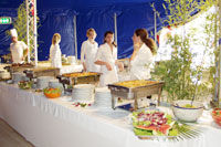 Als Profi-Caterer ist Looß Kulinarisches in der Lage, über längere Zeit über tausend Personen zu verpflegen. Das eingespielte Küchenteam liefert höchste Qualität.