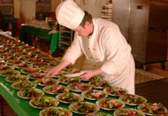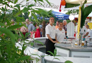 Ein Wandelkonzert in der Abtei zu BebenhausenMönche, ersetzt durch ein Team junger Kuttenträger, servierten schwäbische Finessen. Eine im Nebenraum eigens für diese Veranstaltung eingerichtete Küche ermöglichte die fachgerechte Zubereitung frischer Speisen. So wurden leicht 160 Gäste bewirtet, die die Ruhe und Herzlichkeit sichtlich genossen. |
