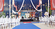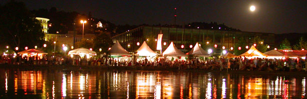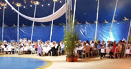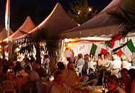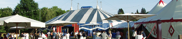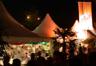 Zum Firmenjubiläum wurde eine Zeltstadt errichtet. Künstler, Akrobaten und Musikanten ließen keine Langeweile aufkommen, bevor die Mitarbeiter nach heißen Discorythmen in kleinen Zelten entschlummerten. |
